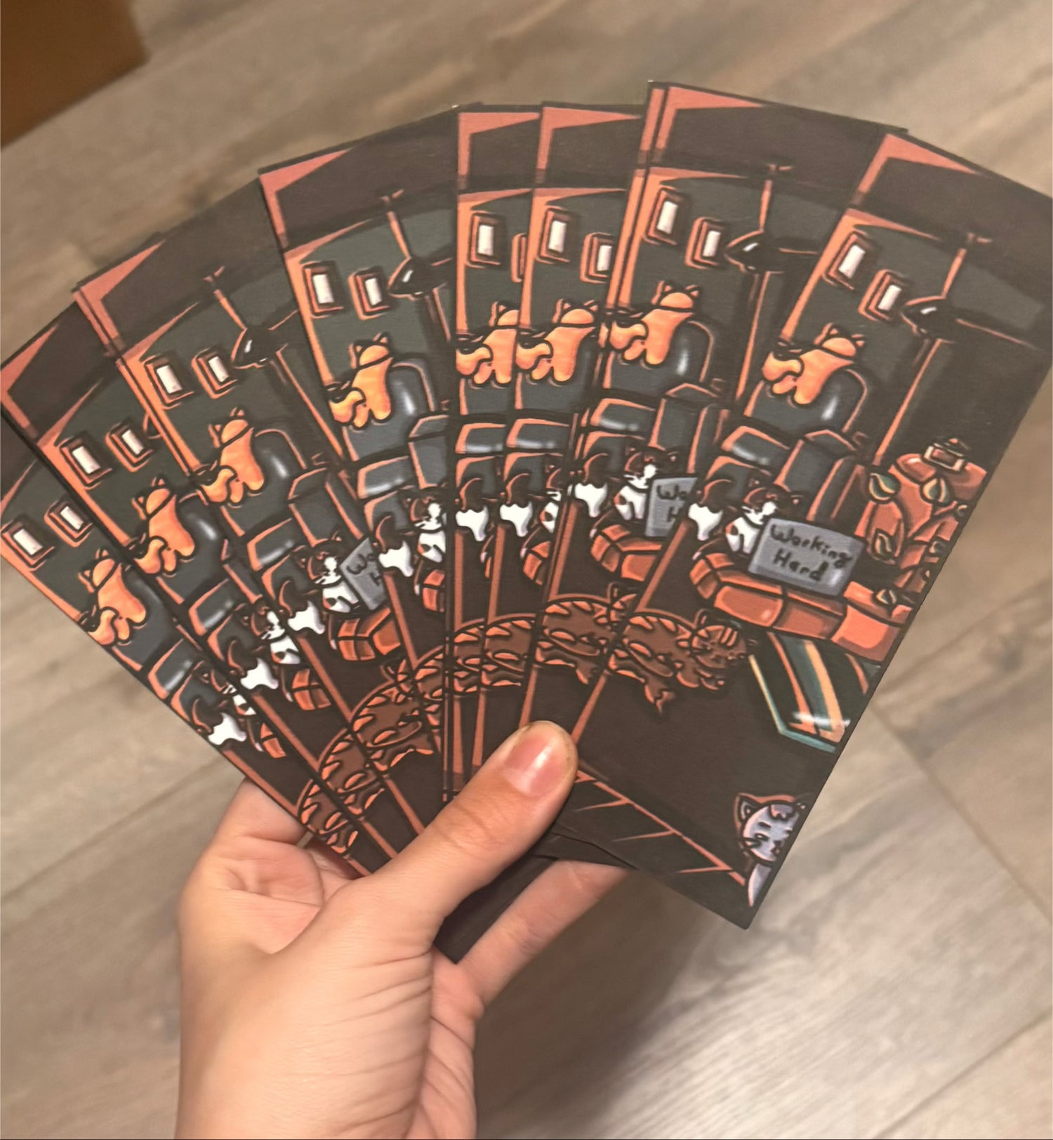 Working Hard Cats Bookmark (Laminated with tassel)