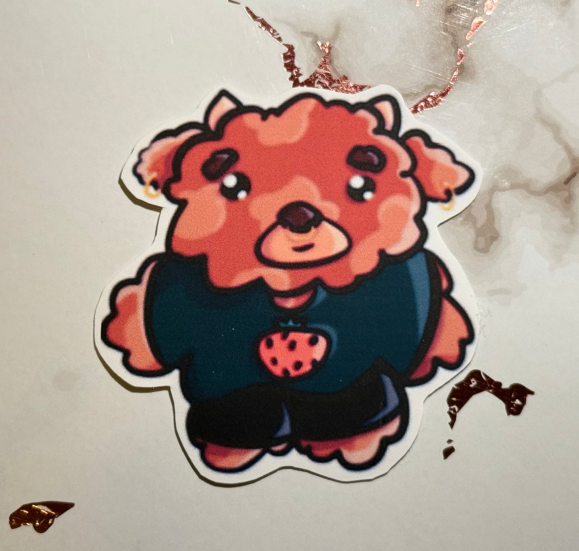 Meet the cutest Highland cow around! This fluffy rust-coloured friend is dressed in a cozy forest-green sweater with a sweet strawberry detail, ready to bring a dose of charm to your day. With soft lines, expressive eyes, and a premium matte finish, this sticker is perfect for adding a touch of warmth and whimsy to your journal, water bottle, laptop, or planner.