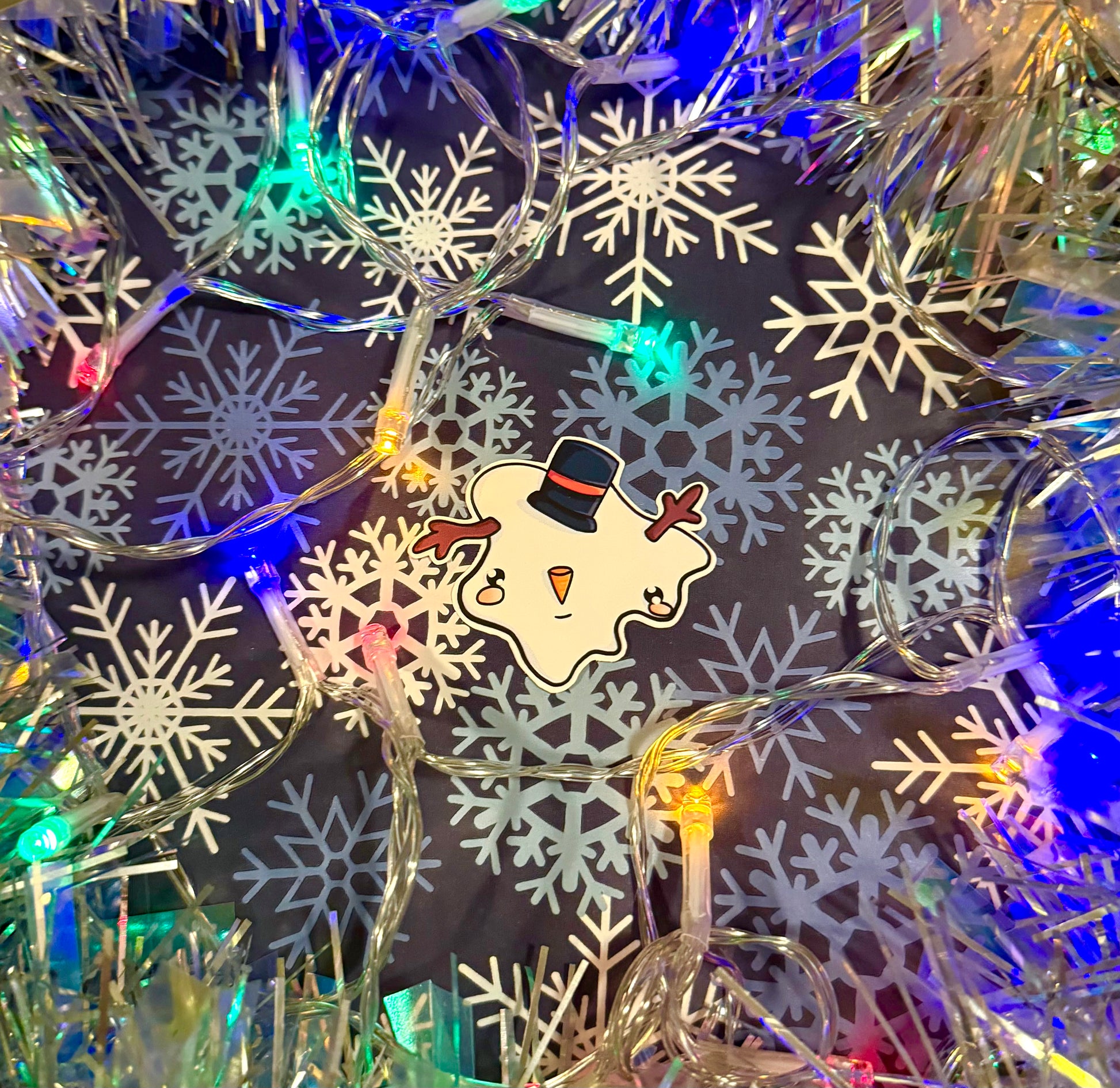 Even snowmen need a little break! This cute melted snowman sticker captures the cozy aftermath of a sunny winter day — complete with a puddly smile, carrot nose, and little stick arms. It’s a fun and lighthearted addition to your winter sticker collection that’s sure to bring a smile.