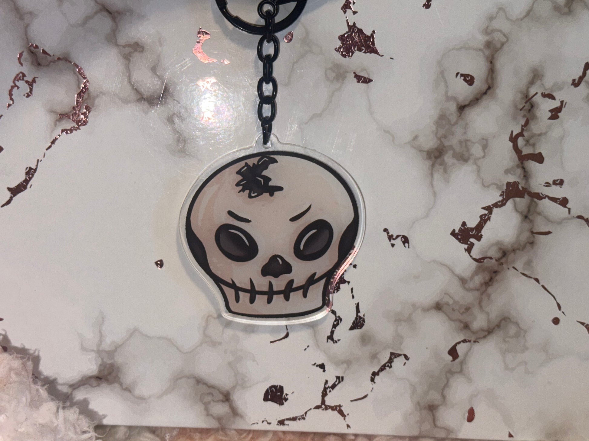 Carry a touch of spooky charm wherever you go with this adorable skull keychain! 💀✨ Featuring a slightly cracked top, stitched grin, and mischievous little eyes, this keychain brings the perfect mix of creepy and cute to your keys, bags, or pouches.